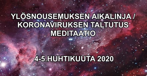************************** VESIMIEHEN AJAN LOPULLINEN AKTIVAATIO maanantaina 21.12.2020 klo 20.22 (klikkaa kuvaa) (klik) Kuuntele ohjattu Vesimiehen ajan lopullinen aktivaatio Tämä aktivaatio auttaa Valon joukkoja maadoittamaan valon energiaa planeetan pinnalle ja vakauttamaan aikalinjan edesauttavasti joka johtaa kauan odotettuun Vesimiehen aikaan. Tähän aktivaatioon osallistuvien ihmisten lukumäärä on yksittäinen vaikuttavin tekijä maanpäällisen ihmisväestön tehoon vauhdittamaan tätä prosessia. ******************* Orin & DaBen TULE TIETOISEKSI VALOKEHOSTASI -nettikurssi 04.09.2020 - 22.11.2020 Kurssi toteutetaan syys-, loka- ja marraskuun 2020 viikonloppuina (pe-la-su) Ensimmäinen yhteinen harjoituspäivä on perjantaina 04.09.2020 klo 19.00 alkaen. Valo-olentojen energeettinen tuki on takanasi valokehoharjoituksia tehdessäsi. Viikonloppuina (pe-la-su) jaetaan kaksi erilaista meditaatioharjoitusta kuunneltavaksi sivuillamme (yht. 72 erilaista meditaatiota). Yhteinen meditaatioaika on klo 19.00 -20.00. Meditaatioharjoitukset ovat suomenkielellä. Yhteisiin meditaatiohetkiin osallistuminen edellyttää ilmoittautumista email: ainoaoikea@aomedia.fi Saat ilmoittaumisestasi palautteena: käyttäjätunnuksen sekä salasanan päästäksesi Tule tietoiseksi valokehostasi-nettikurssi-sivulle. Kurssi on kaikille ilmainen, mutta vaatii sitoutumisen viikottaiseen meditaatiohetkeen valo-olentojen kanssa 3kk ajan. TULE TIETOISEKSI VALOKEHOSTASI vuonna 2020. (kts. lisäinfo) ******************* TITTARA VALOO ON KAAKOSSA 2020 TITTARA linkittyy VALOO HELSINKI -tapahtumaan 27.06.2020 klo 15 alkaen https://valonkesa.fi/valoohelsinki.html ********************************** Massameditaatio 4-5.4.2020 Kuuntele tästä ohjattu meditaatio (taustalaulu elokuvasta Uskollinen puutarhuri: Ayub Ogada - Kothbiro) Voit hyödyntää meditaatiota jo nyt koronaviruksen taltuttamiseen. ********************************** ********************************** Valkeuden kartanon Joulutervehdys 2019 Hyvää Joulua & Valoisaa Uutta Vuotta 2020! (klikkaa Joulutervehdyssivulle) ********************************** Kuuntele: Pääsiäisen ja helluntaiajan virsiä ********************************** Laajennettu valokeho Nonstop -nettikurssi 01.04. - 09.06.2019 Tule tietoiseksi valokehostasi -kurssin käyneille Ilmoittautuminen ainoaoikea@aomedia.fi Saat palautteena käyttäjätunnuksen ja salasanan kurssille. ***************************************